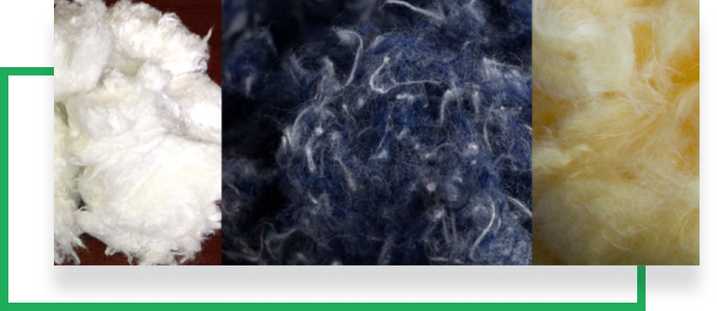 Our Reclaimed Fiber blends are created from textile waste that has been sorted by fiber type, defiberized and blended according to our 360° recycling process. Specialty fibers or flame retardant treatments can be added for specific performance characteristics. We produce our fiber blends from both post-consumer and post-industrial textile waste, and are able to work with our customers to create engineered grades to suit their processes. We have grades for a variety of applications. Contact us to learn more.